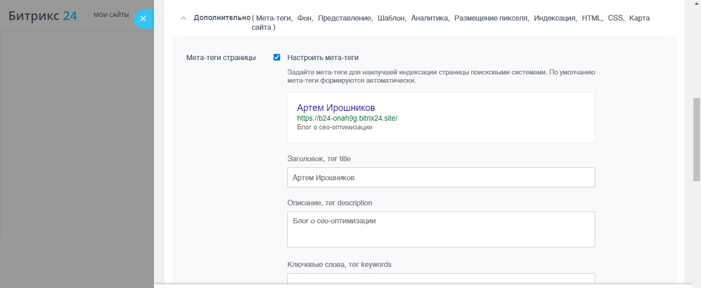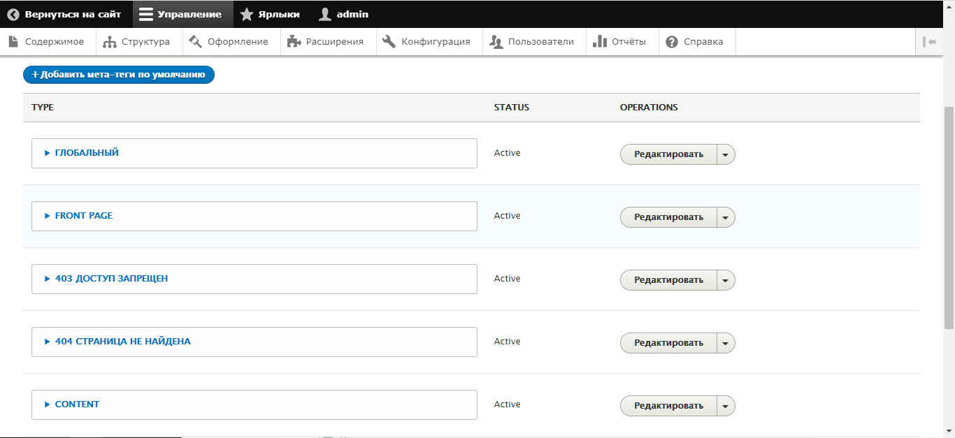 В админке панели внизу вы найдете целый комплекс по работе с метатегами: